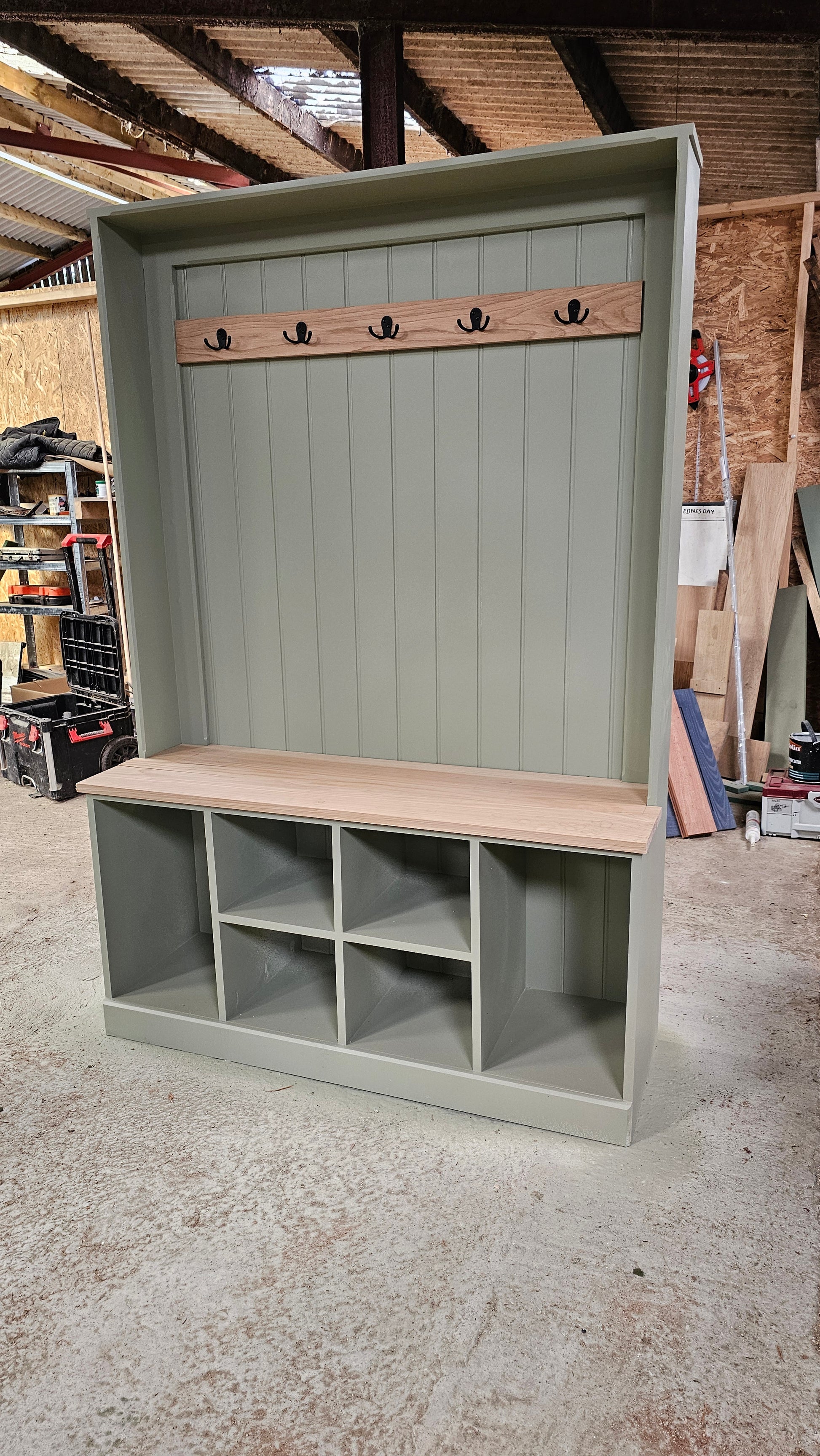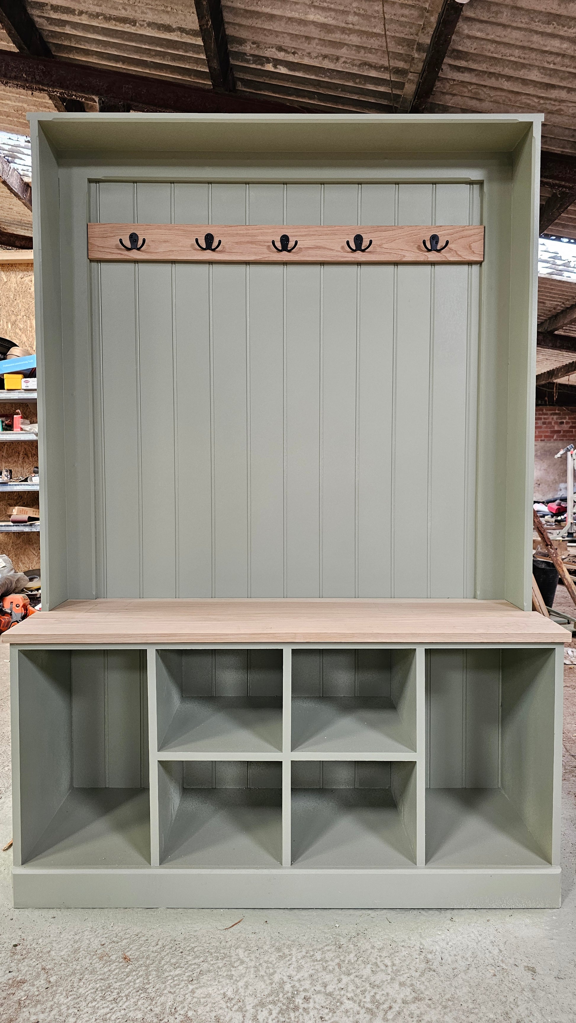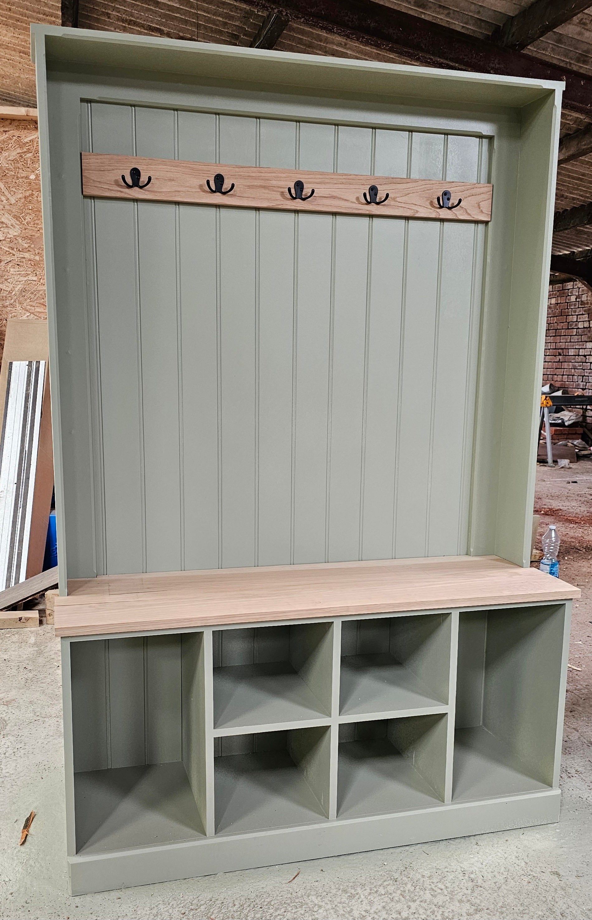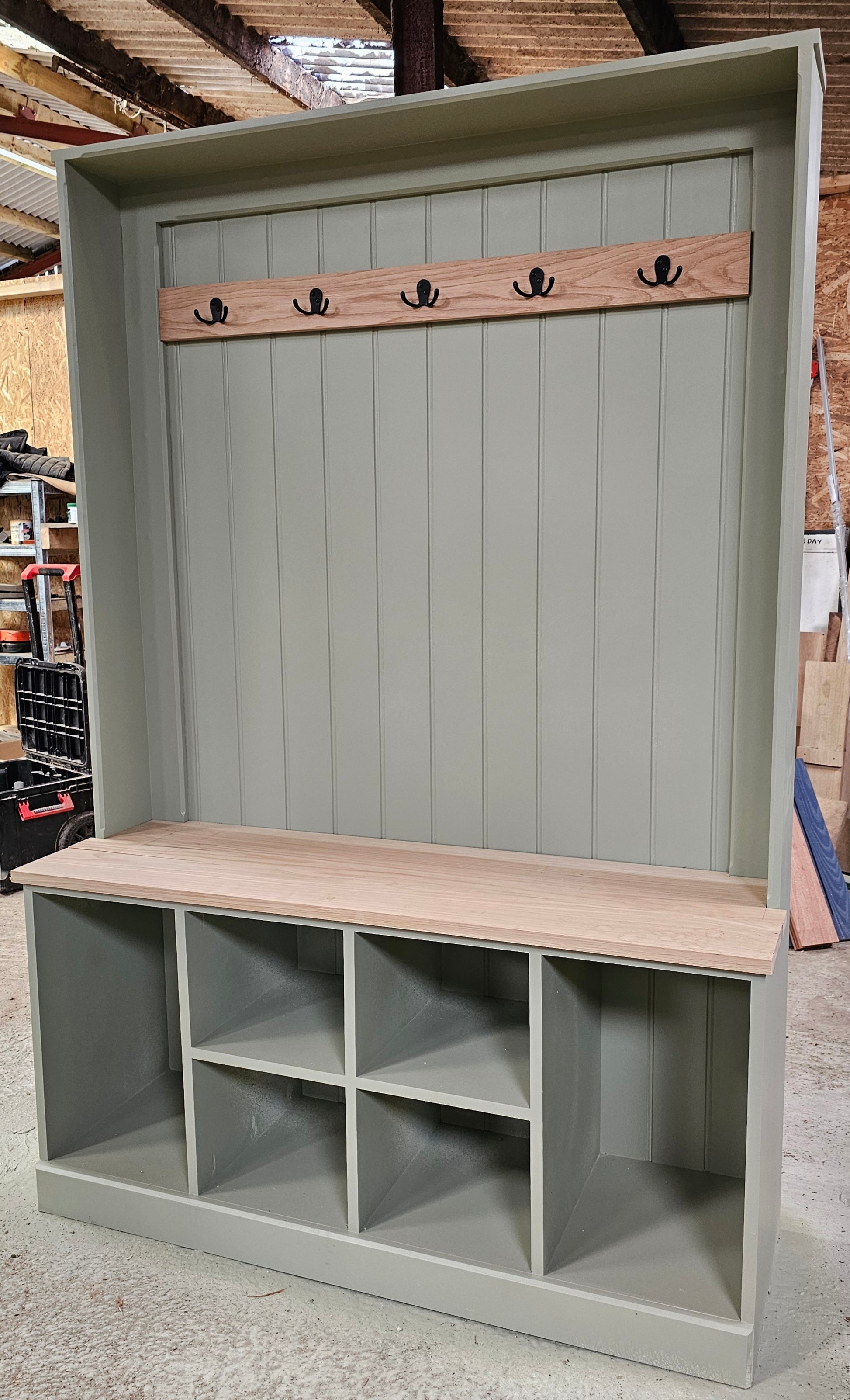 The main structure is built from high-grade Medite Moisture-Resistant MDF, ensuring long-lasting strength and stability. The seat base and coat hook back panel are handcrafted from solid, kiln-dried European oak, offering natural warmth, texture, and durability.